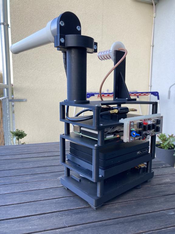 5. Patro je plošina pro antény. Na něm jsou přišroubované držáky na dvě antény, každý jiný, a je to opět takové modulární, kdybych vymyslel časem jiný držák pro jinou anténu, natisjnu jenom samotný držák.