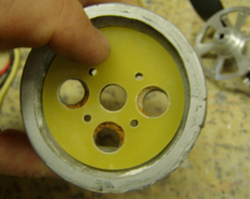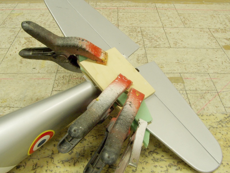 Zdrsněné výztuhy jsem přilepil 5min epoxidem. Současně jsem přilepil i opravenou překližkovou destičku ( má tvar písmene L), která chrání kabely před kontaktem s rotujícím pláštěm motoru.