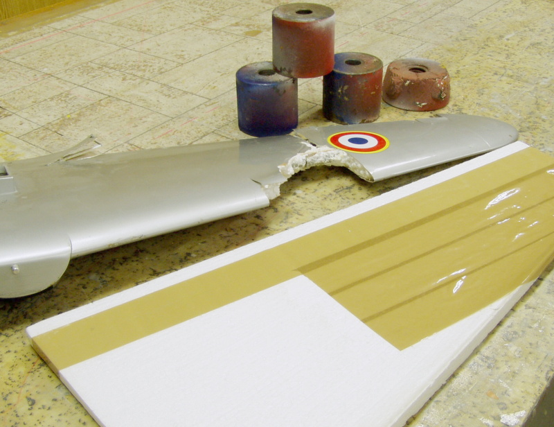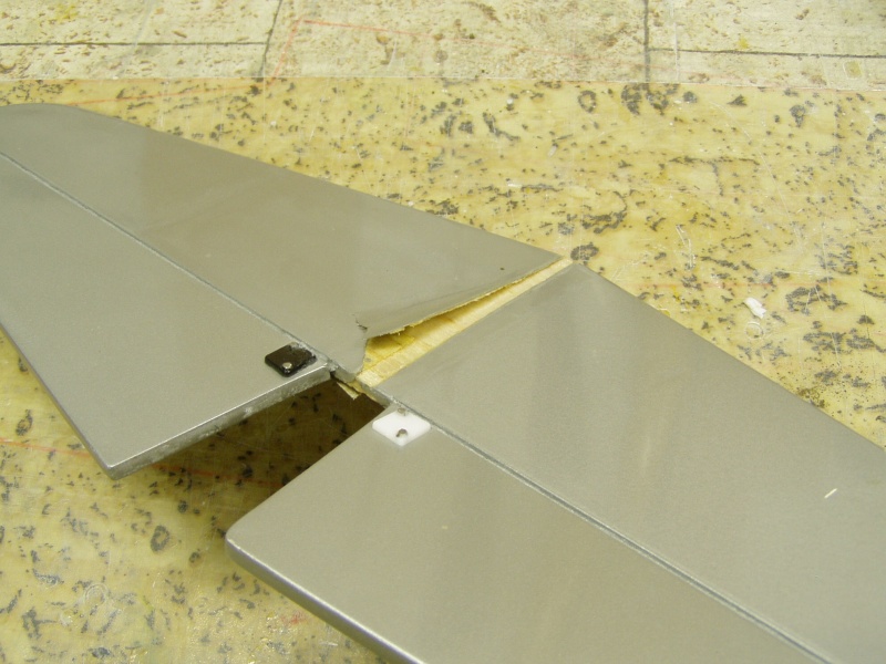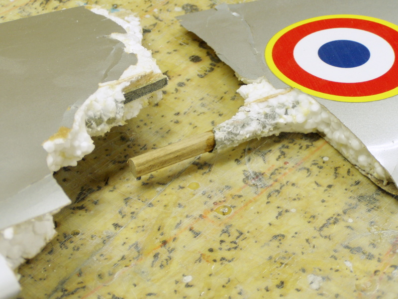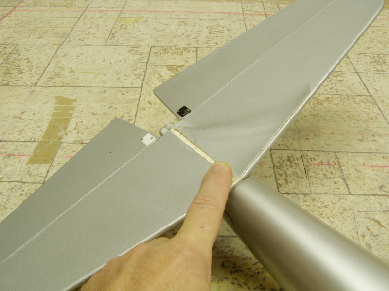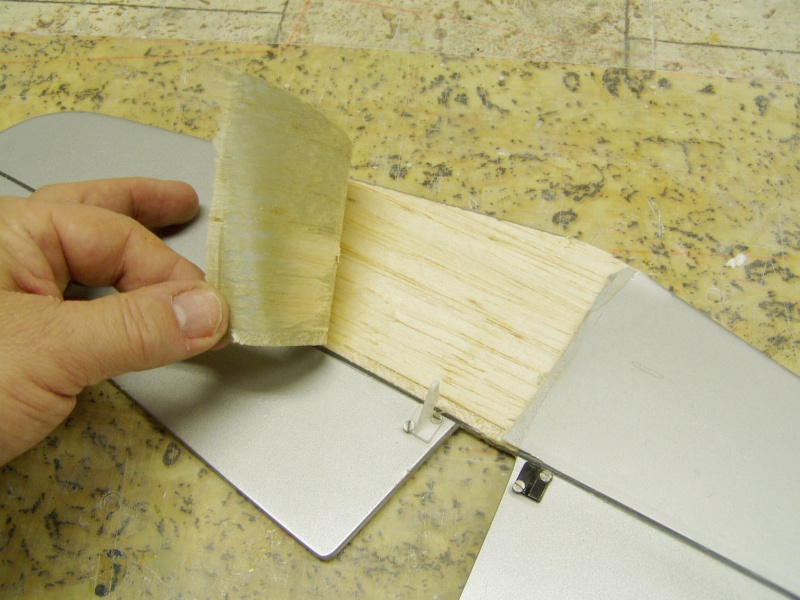 Pozn. křídlo je klasická combatová verze tj. PS jadro vyztužené uhlíkovou trubkou pr.10mm ,potažené hnědým balícím papírem, přilepeným Soudalem 66. Střed křídla je přelaminován třemi , na šířku odstupňovanými pásy skelné tkaniny .