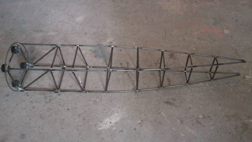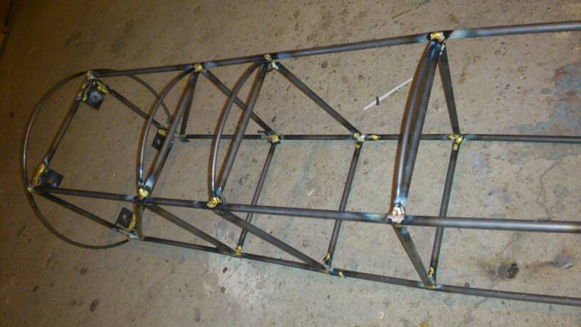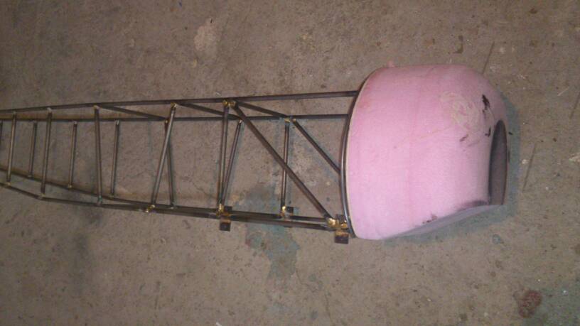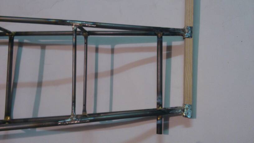 Tak otvaram vlakno, kde budem postupne davat, ak to vobec dokoncim, prerabku fokkera d8 rozpatie 2,5m benzin 65ccm, kde bude trup urobeny z tenkostennych trubiek pr. 8X0,5mm, 1m vazi cca 96gr. Zatial som v Podbrezovej ine nezohnal aj ked sa robia od 4mm , ale daju sa len tazko zohnat , zatial som urobil sablonu na bok z odrezkov bukasa. Na jeden bok, ako je na obrazku som minul 1 mosadznu bielu elektrodu vazi 560gr. Je to pajane tvrdou pajkou. Je to na krut tak pevne, ze na tuto velkost by urcite postacovala aj 6mm trubka. Paulo Severimi to robi z nerezu. Priecky su spojene tak , ze v pozdlznej trubke su vyfrezovane otvory 3x10mm kde sa vlozi priecka, ktora je na ohoch koncoch splostena