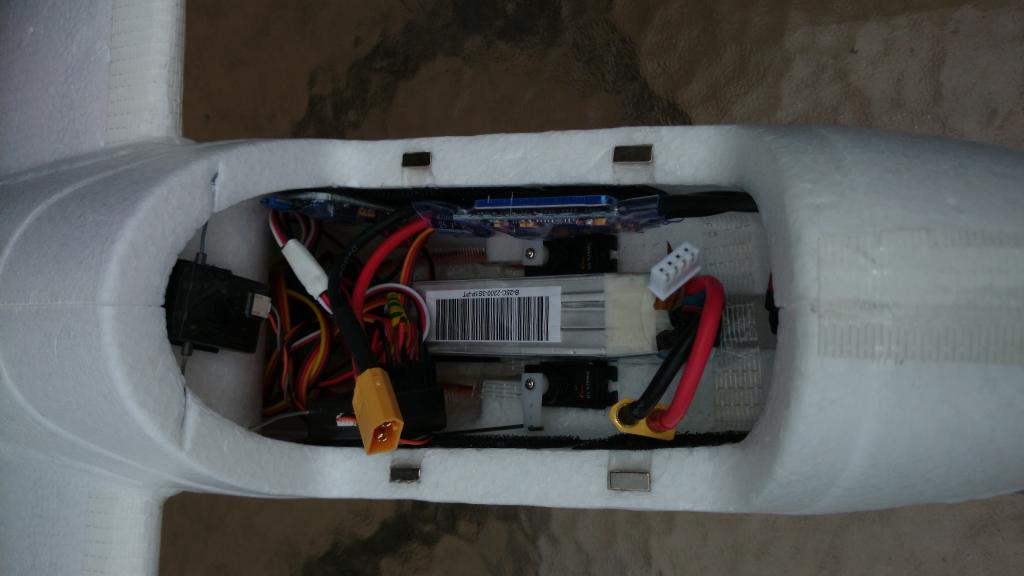 Lepší z hlediska chlazení je určitě volně položenej, ale zase to chce dávat pozor na to, aby nezabránil např. chodu serva atp. Já mám jen přilepený kabely a jinak je volně položený a problém nebyl, kdyžtak můžu udělat fotku.
