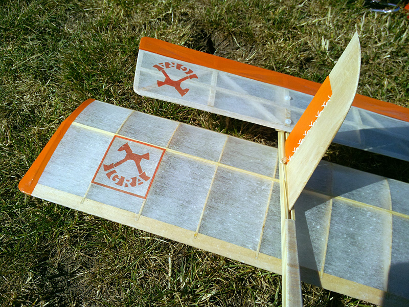 Křídlo potaženo Mikalentou z dobových přebytků. Grafika je scan originálních obtisků, následně inkoustovkou vytištěno na tenký Modelspan, následně přilakováno na hotový potah a celé ještě jednou přelakováno matem.
