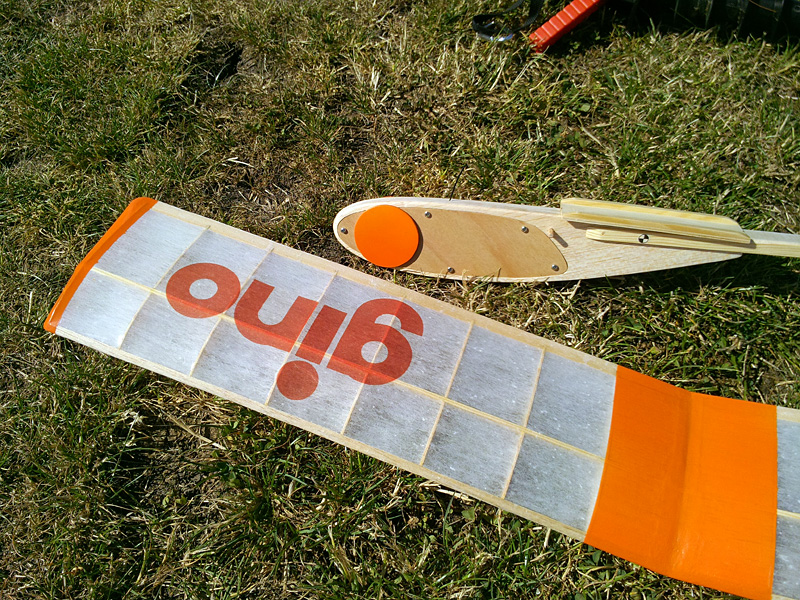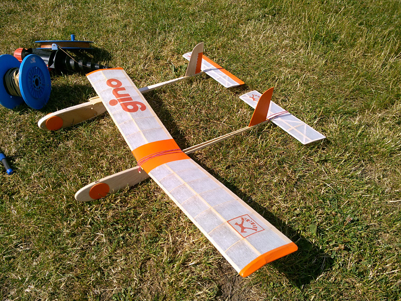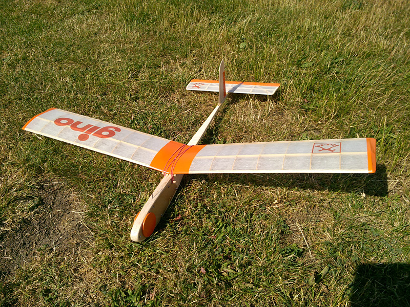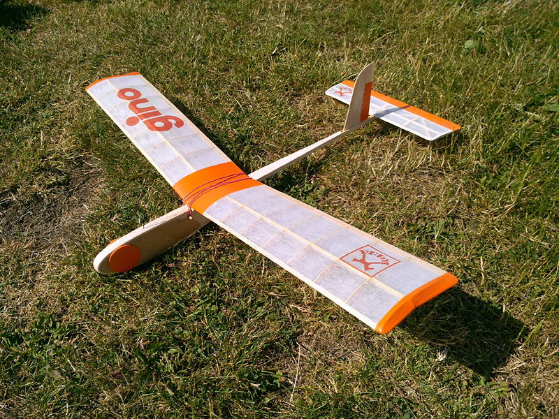 GINO byl první model, který jsem si postavil a opravdu létal. Před pár roky jsem viděl stavebnici na Předveď a Prodej. Za 200,- jsem si ji koupil a nechal si podepsat krabici od Jirky Kaliny.