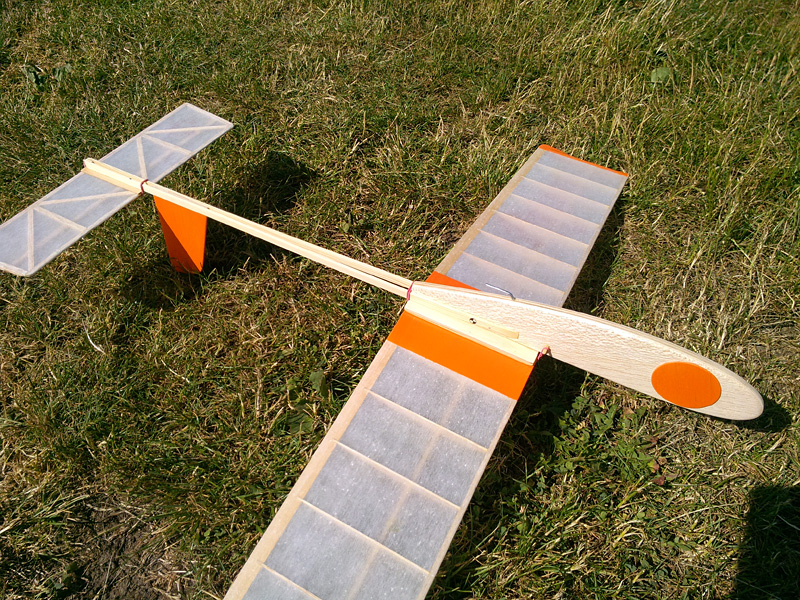 Zdá se mi létavější než volná. Že by těch 11 gramů dělalo tak moc? Klidné stoupání na gumicuku, bezproblémový přechod do kluzu, termický závan je krásně signalizovaný, ale než se tam člověk otočí letadlo je o pár metrů níž... Takže se nedá nic dělat, musím si postavit nové a větší (950 - 1 000 mm) křídlo. Ale to už bude jiná pohádka.