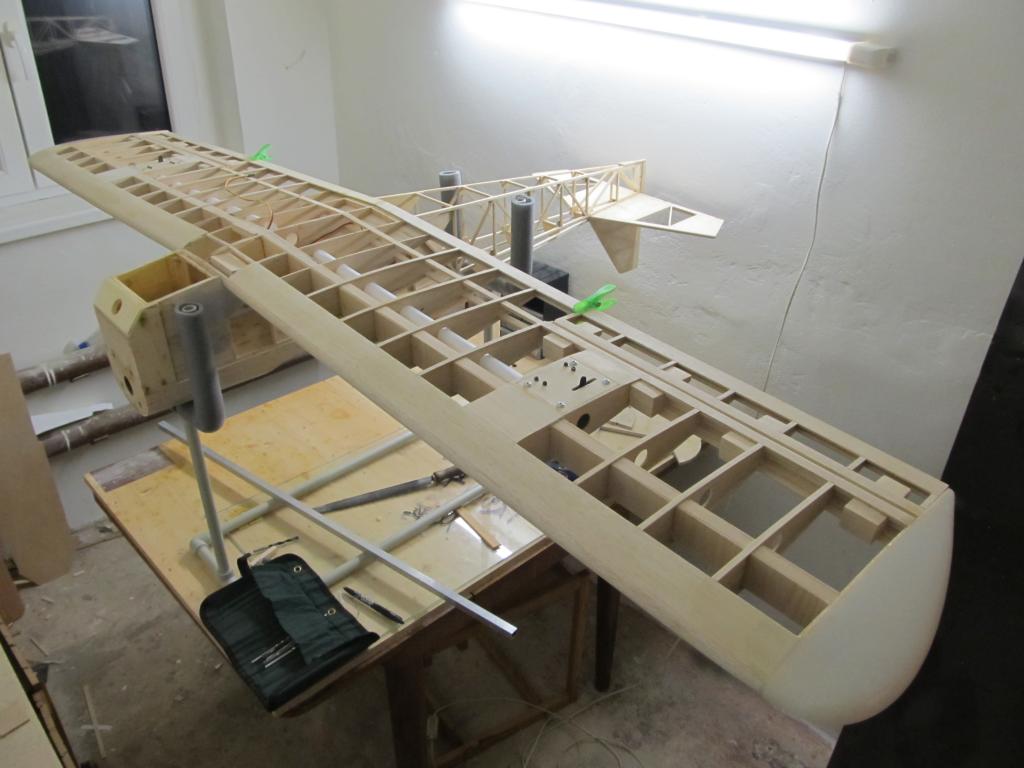 Stavím to pomalu, nebyl čas. Takže jsem táhlo ještě neřešil. Mám v plánu stavbu do jara dotáhnout do konce. Letadlo je postavený, jen potáhnout a osadit.
