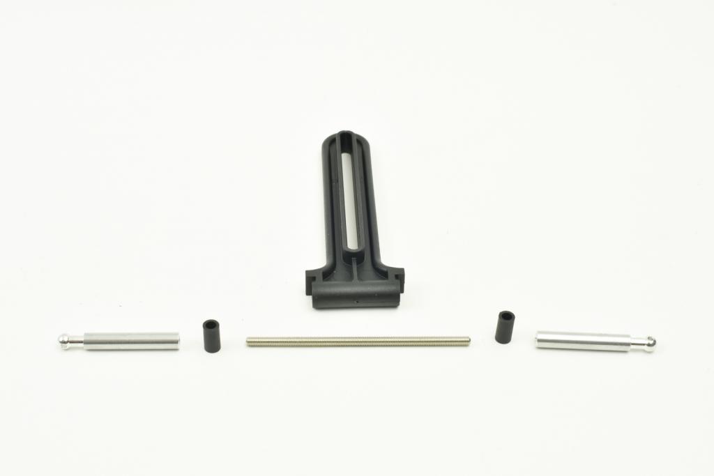 Ke složení ocasu chybí ještě vpěry a táhlo vrtulky. Ty se nijak neliší od Mikado standardu - karbonové trubky jsou epoxidem zalepeny do plastových koncovek. Koncovky vzpěr jsou opět Mikado typicky vybaveny kulovými čepy, takže se utažením šroubů nijak nekroutí.
