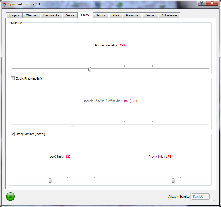 Spirit nebol by menejcenny, ked by nemal tu moznost nastavenia limitov vrtulkoveho serva zvlast, no ked by umoznil len nastavenia limitov do prava a do lava jednotne.