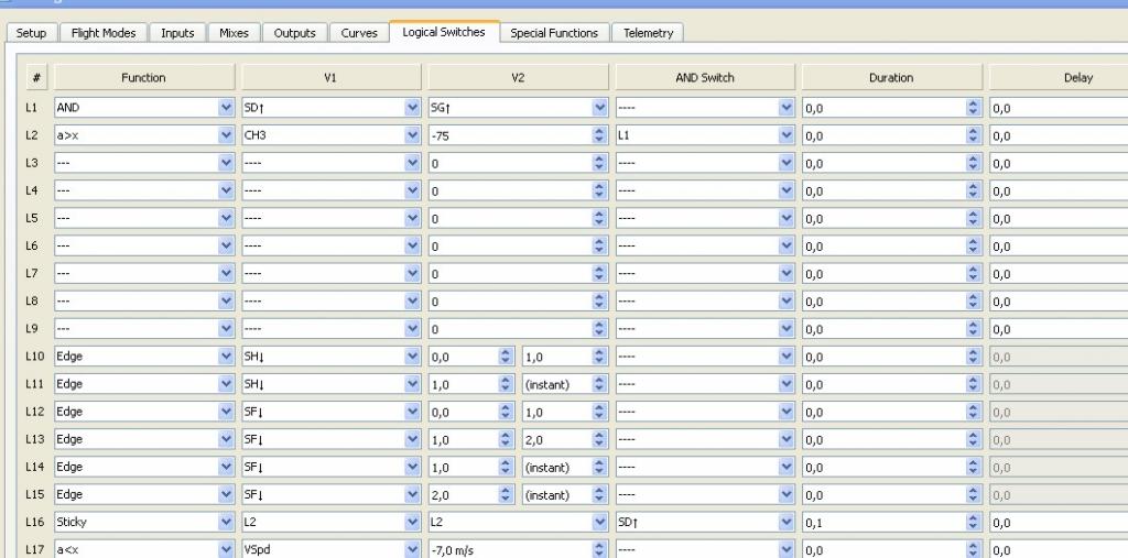 Pokud ti to pomůže takto by to vypadalo v rádiu (OpenTX 2.1.8 ):