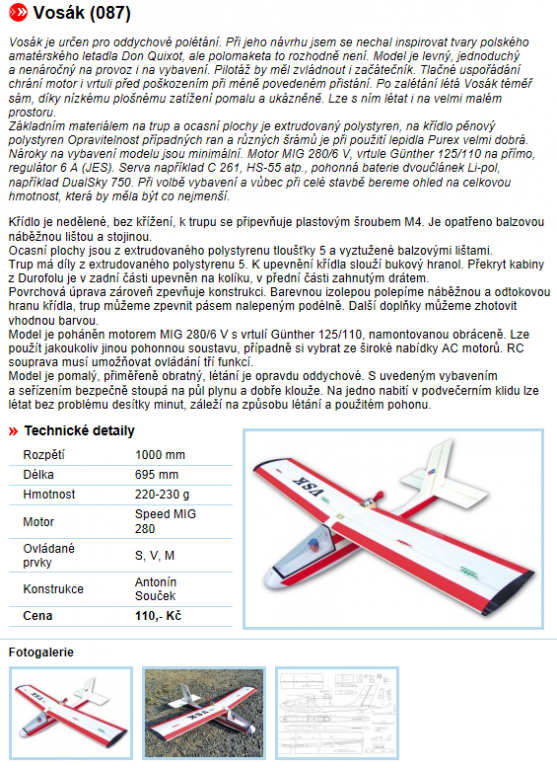 Tohle znám a hodně o tom uvažuji,spíš by mě zajímaly letové vlastnosti a zkušenosti druhých.