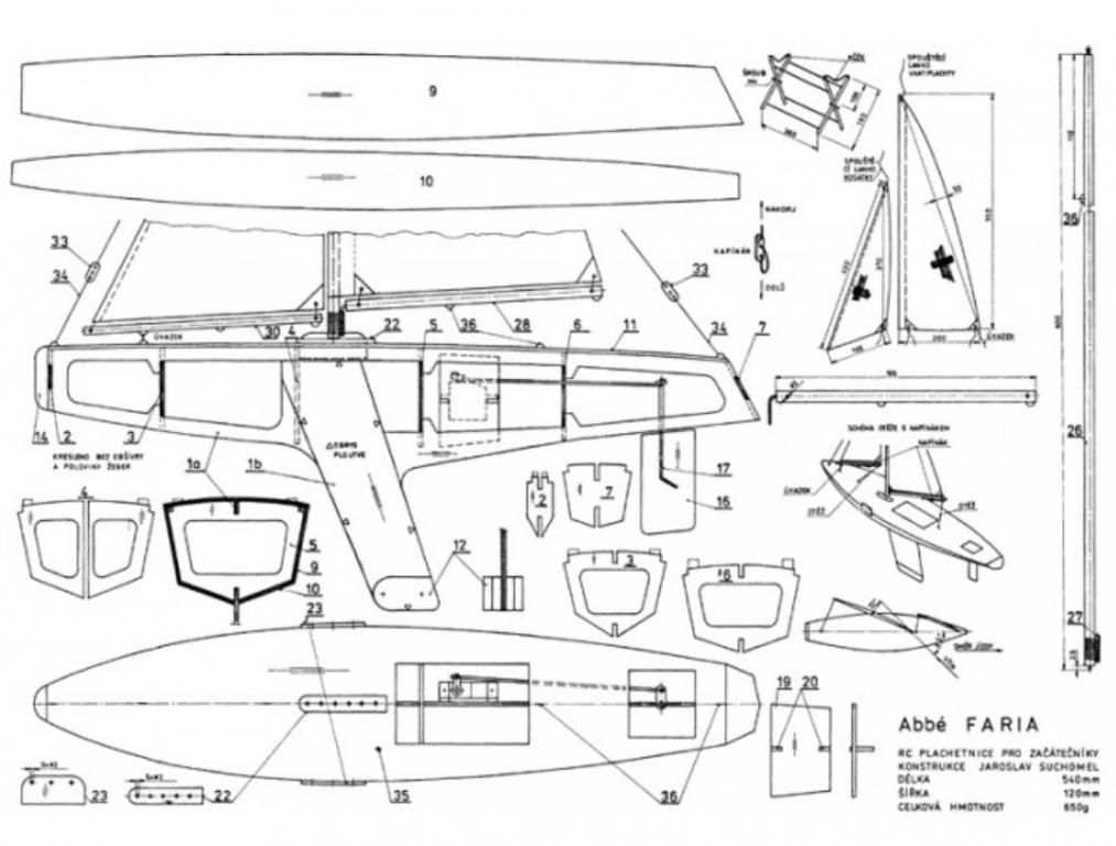 Loď Abbé Faria je docela malá loď, hlavně je dost úzká. Do trupu by se ovládání plachet jen těžko vešlo. Co třeba zkusit stránky s plachetnicemi Micro Magic, kde druhé servo přes páku ovládá jak kosatku, tak i vratiplachtu a ještě lépe RG 65. To jsou lodě vyzkoušené a na internetu je poměrně dost plánů hlavně pro RG 65. Je skutečností, že větší lodě lépe jezdí a RG 65 svojí délkou 650 mm ještě není tak velká a dá se i docela dobře převážet sestavená.