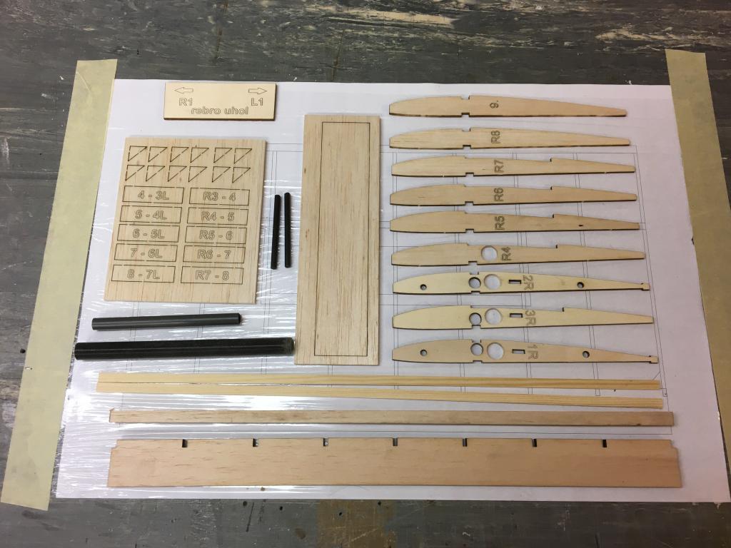Budem postupne pridávať fotky a menší komentár zo stavby , dnes začneme stavbou krídla. Pripravíme si všetky časti obr. 1.