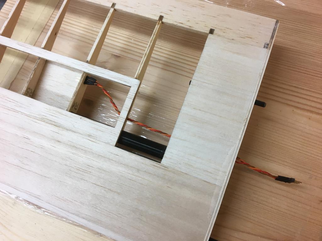 Nakoniec pred poťahovaním si treba zaletovať priložené konektory a uložiť cez otvory v rebrách do krídla. / obr.7 a 8/.