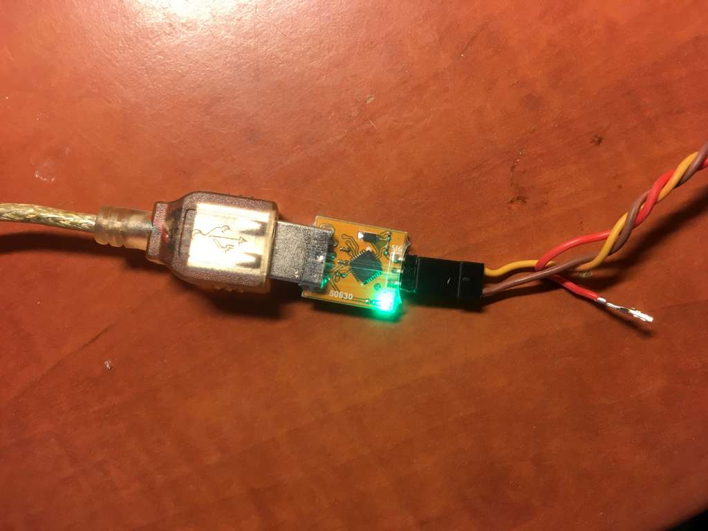 2. připojím programátor do USB na počítači. Na programátoru se rozsvítí zelená LEDka.