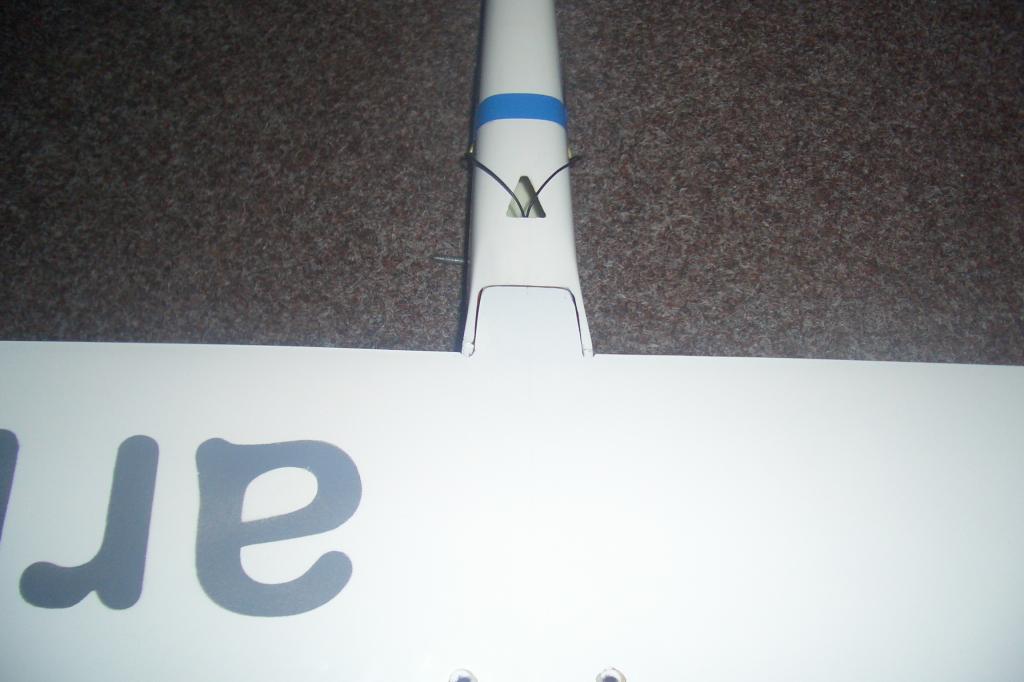 Já nakonec třetí šroub nedával a místo toho jsem jazyk křídla prodloužil (podlepil) laminátovou destičkou s zasouvání do trupu. Celé je to napružené, takže drží křídlo pokaždé stejně. Celé léto to vydrželo, takže to beru za funkční řešení.