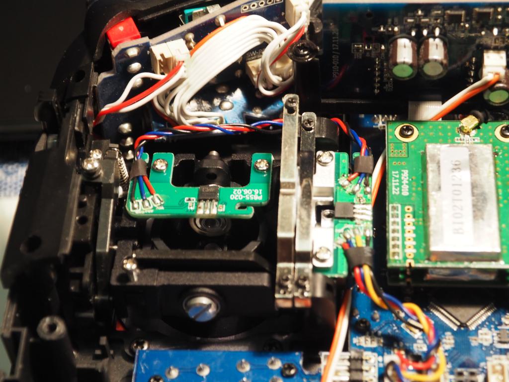 O GPS do tx jsem nic nenašel, ale přikládám jednu mojí fotku, která naznačuje možnost použít Gyro pro vysílač a ovládat model nakláněním vysílače. Zřejmě jsou to dva zatím nerealizované záměry.