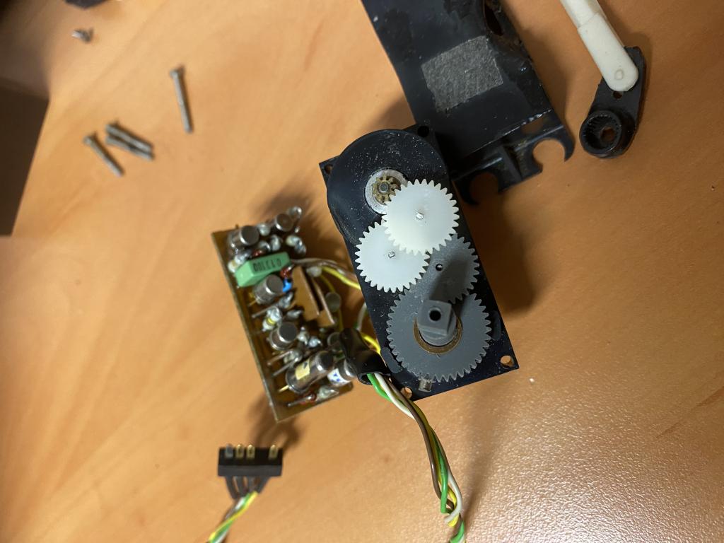 dodal jsem si odvahy a servo jsem rozebral a nafotil. Co k tomu dodat. Elektronika je to nejběžnější co se na našem trhu dalo dát dohromady běžné křemíkové tranzistory a ve výkonové části běžné komplementáry GC pětistovky, ALE motor serva je je japonský pětilamelový Mitsumi a zde je kámen úrazu, ty se totiž přestaly do republiky dovážet byly devizově kryté a to byl ten kámen úrazu. Export nebyl lukrativní, aby devizy vrátil a tak to soudruzi odpískali jako již v minulosti mnohokrát. A zde jsou snímky rozebraného serva. Snad mi bude zase fungovat :-)