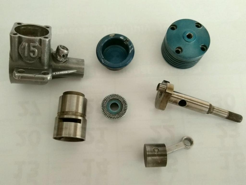 Tak motor jsem rozhejbal,vyčistil od zaschlého ricinu.Když jsem vyndal vložku s protipístem ,tak mě docela překvapila vrstva karbonu na pístu.Nicméně jsem karbon očistil a vložku otočil do správné polohy o 90 stupňů.Motor má poměrně slušnou kompresi.Tak jsem nelenil vyštrachal palivo D1 od pana Másla a jal se startovat.Asi na patnácté protočení motor zavrčel a za chvilku čapnul úplně.Na to zabíhací palivo běží úplně v pohodě.Možná časem ztratí kompresi díky tomu,že jsem otočil tu vložku do správné polohy.Ale to nevadí stejně je do sbírky.Takže děkuju moooc všem za rady a typy.