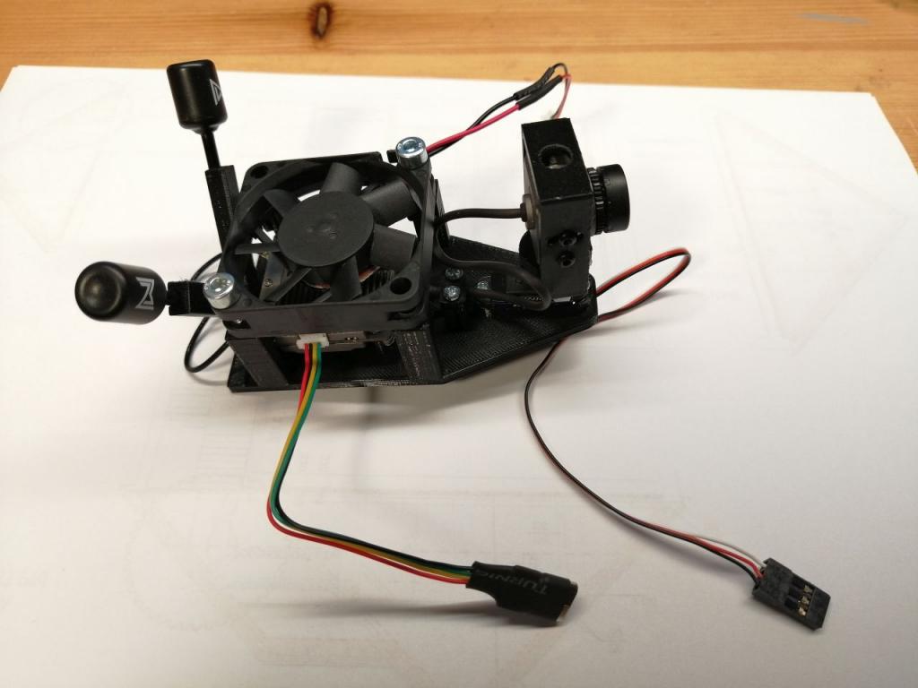 My design of Sky Unit holder with servo gimbal. Because I`m still in on-board testing mode ( waiting for next INAV release ) I added also fan holder not to overheat it. If anybody want to use it, good luck.