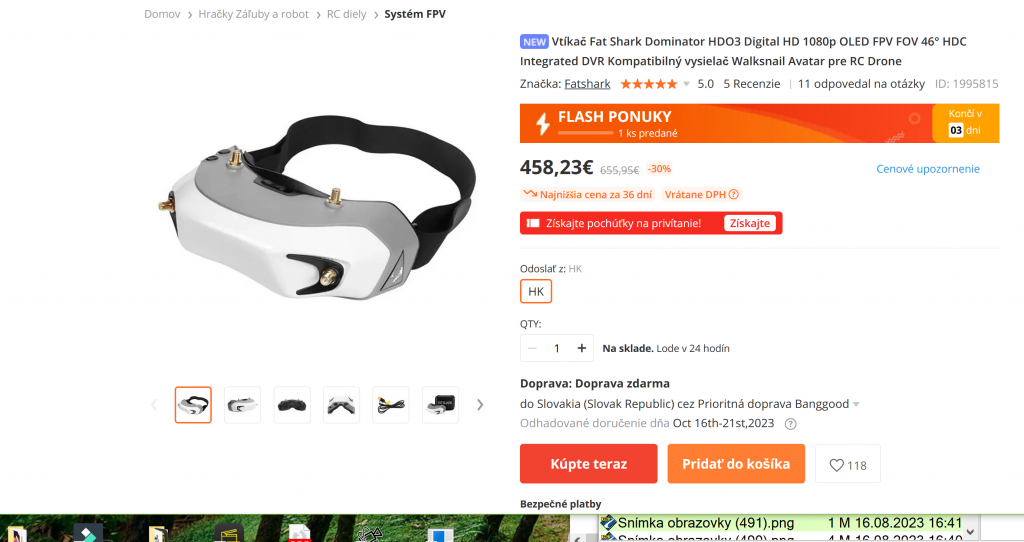 Fat Shark z Hongkongu pomocou DHL expressu - predajná cena nezahŕňa DPH a clá. Aliexpres to má vyriešené s poplatkami.