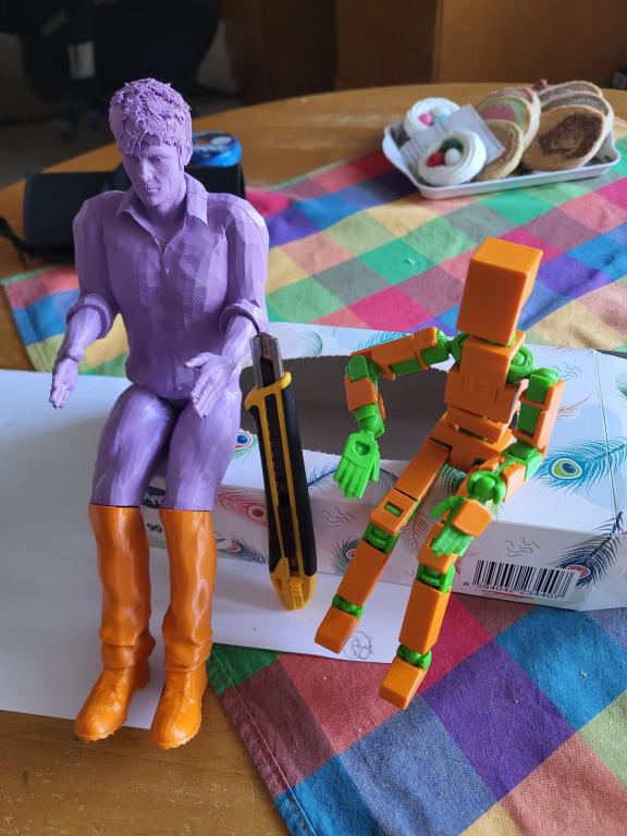 Velikost není problém, tu si můžeš ve Sliceru upravit dle potřeby ale sehnat nějaký slušný data, to je docela problém. Kámoš mi kdysi nabonzoval, že existuje nějakej free program Sculpris, ve kterým se dají předmodelovaný bysty a i celý těla z knihovny upravit ze stojícího na sedící, různě natočit ruce a hlavu a přidat doplňky jako kšíry, čepici a pod. Ale je na to prý potřeba trochu výtvarnýho nadání.