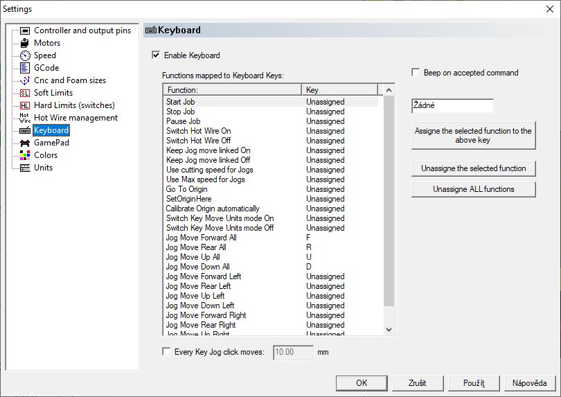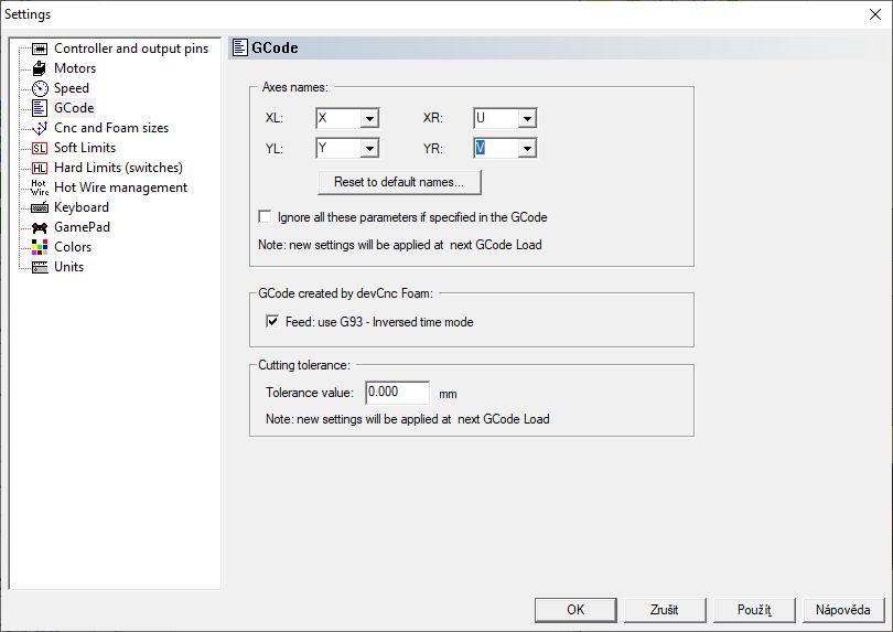 Dále nastavíme jednu veledůležitou věc - pojmenování os řezačky