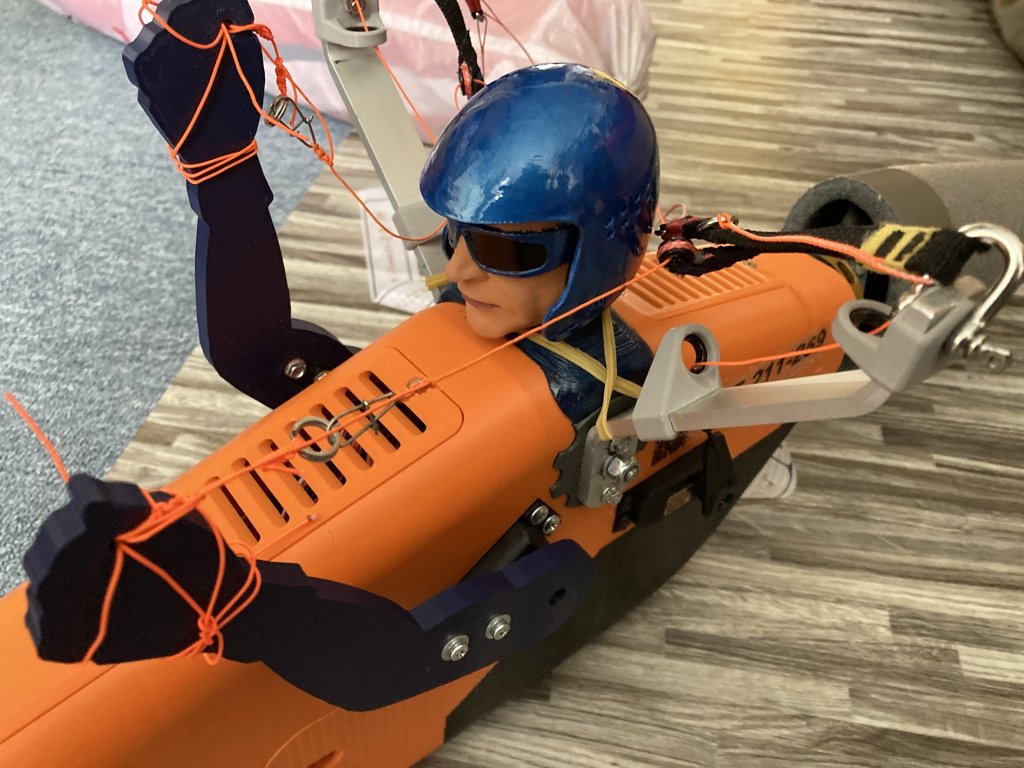 Například tato lehačka z ABS k RCparaglideru se při kolapsu vrchlíku a prvním nárazu na zem ihned přerazila. Podobně se při ťukanci gumou přestříhl krk u jednoperimetrové hlavy z ABS.