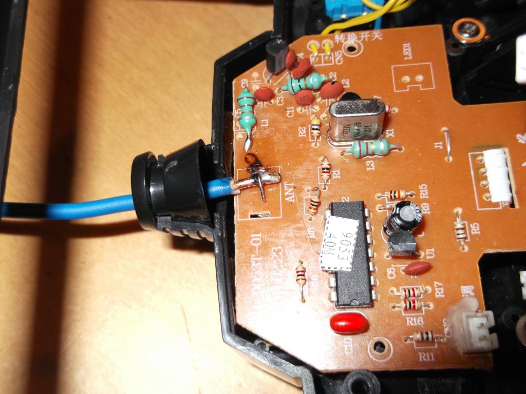 Taky jsem zjistil že není kam přišroubovat anténa a tak jsem z drátu vyrobil provizorní.