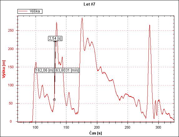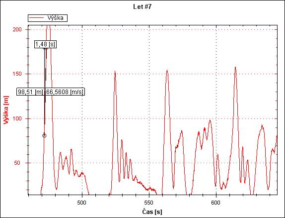 Každopádně bezbečně chodí na cca úseku 100m nahoru kolem 63-65m/s , s tima teplýma baterkama udržela tuhle rychlost i na 180m úseku kolmo nahoru a našel jsem i úsek od 70m - 100m nad zemí kde mastí 74m/s. Fakt je že lehce nafukovalo, tak to peláší líp.