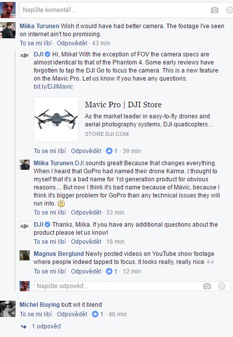 To sa nechajme prekvapiť či bude ale čo som už počítal (diskusie medzi tými troma čo som ich spomínal) okolo Mavicu, tak spomínali že po update kamery bude aj autofocus. DJI zrejme spravil Mavic ako novinku a dal do toho manuálne ostrenie čo veľa ľudí nepochopilo lebo sa do teraz s tým nestretlo.. ak by ľudia neboli spokojní tak si myslím, žeby to updatom (novým FW) napravili.. Ale hlavné je to, že v DJI vidia, že ľudia reagujú na kvalitu obrazu a DJI tvrdí, že kvalita je rovnaká ako na P4 akurát má iné ohnisko - 28mm ako P4.. a iný uhol záberu.. Takže zostáva nám len veriť, že je to tak :)