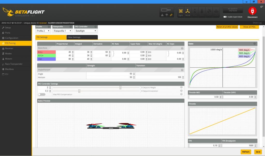 Tak jsem PIDy frknul, jak jsem je našel na RCG a paráda. Akorát jsem nechal ve vysílačce Expa, protože i tak je to ostré. Přesto jsem bez problému párkrát v kuse proletěl bytem a dobrý :) Jo a na domácí lítání docela nutná úprava proti převrácení v případě crashe, protože to odskákávala anténa na kameře. Nenapadlo mně nic jiného, než smršťovačkou spojit dva stahovací pásky...