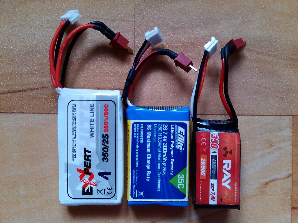 PS: Psal jsem první dojem po první baterce (srovnání výkonu a napětí naprázdno na čl. po stejném letovém čase jako s origo baterkou s 80 cykly). Hodnotit to budu až po delší době :). Jinak zatím dobíjím max. 1C (první 3 cykly - tzn. 300mAh), pak už budu nabíjet 3C (1A).