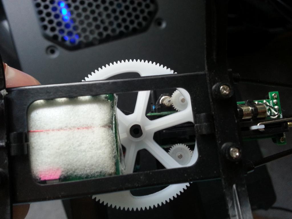 Tak to pravděpodobně bude velkým ozubeným kolem. Zkoušel jsem podržet to maličký ozubený kolo u motorku a protočit velké bílé a nepotřeboval jsem ani moc síly k tomu aby se to protočilo