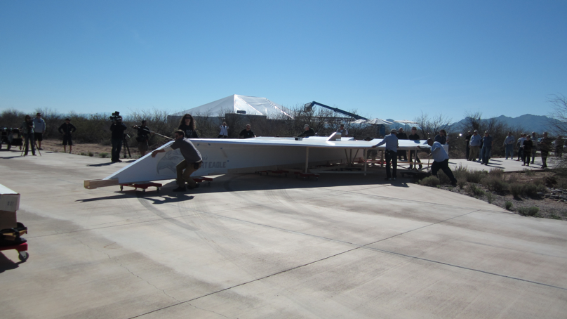 Z toho videa toho mnoho poznat nejde, snad jen, že je to stroj bez vzepětí, zřejmě s profilem rovná deska nebo velmi podobným a s elevony výrazně zvednutými nahoru.