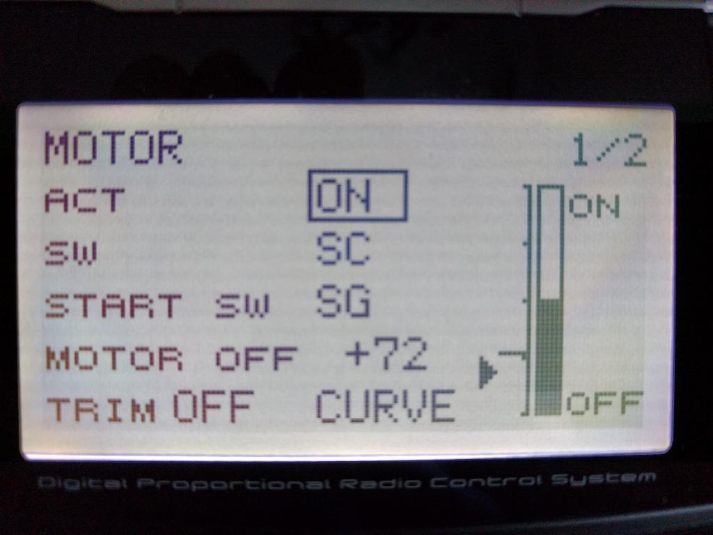 Dík za nasměrování, režimy chodí jak mají. Ještě bych potřeboval radu ohledně motoru. Nastavil jsem v menu "motor"(obrázek), ve function přiřazen J2 S a motor vrkne pouze v cca středu polohy páky. Co jsem kde přehlédl?