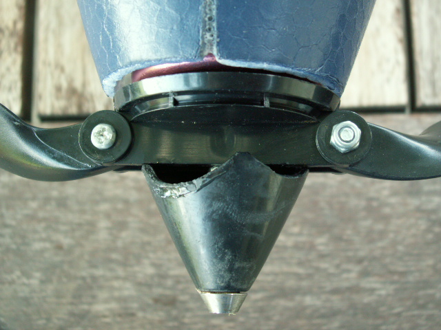 Ahoj přátelé, vyzkoušel jsem nový kužel, který jsem si udělal ze zbytků silonu a podobné hmoty.Tento se určitě neroztrhne!Už jsem ho vyzkoušel při několika startech, vše OK. Pro úplnost přidávám foto jak kuželu,tak unašeče na motoru. To pro případ, že by někdo chtěl kupovat nový(asi hliníkový) kužel.Ještě mám v plánu vyzkoušet nějaká vylepšení, ale o tom až příště.