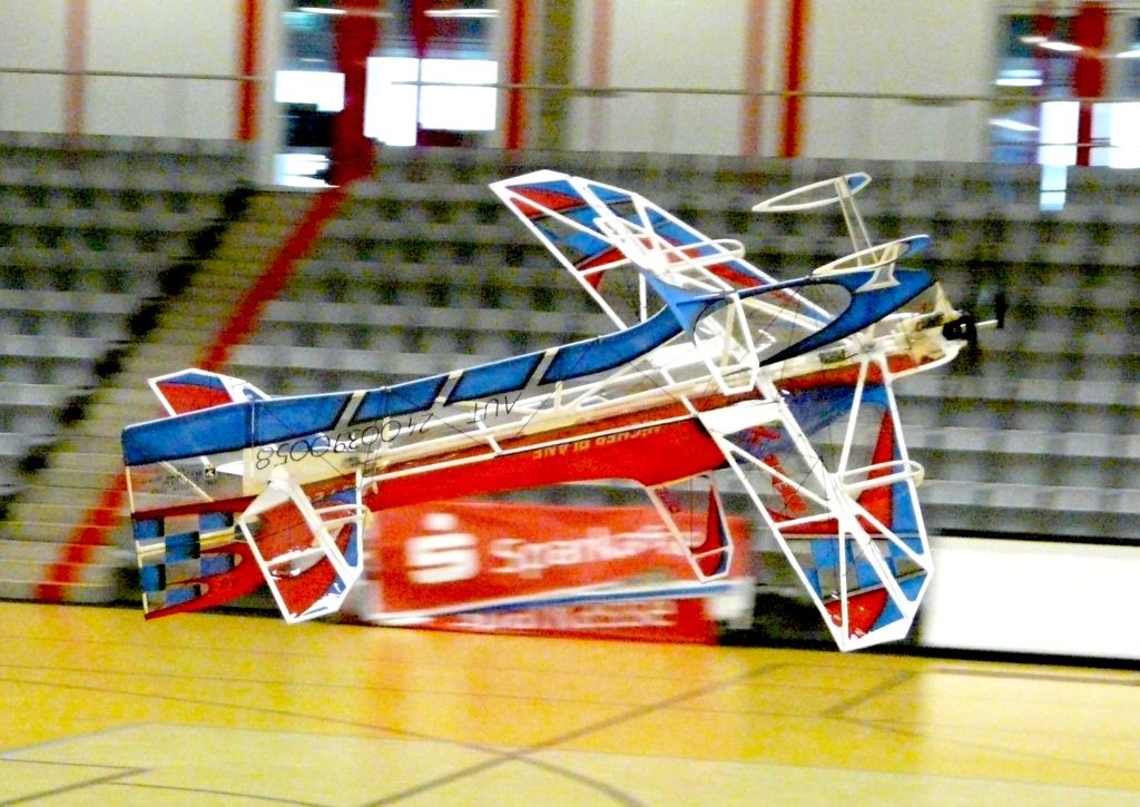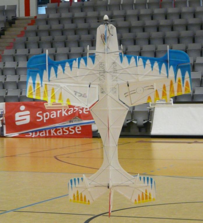 ... zjímavost španělský model 86 gramů, letí to pekelně pomalu, až je to neuvěřitelné, ale nevím jestli to je ono, podle mě je to plácání vzduchem,model se kroutí a klepe....je to úplně jiný styl....uvidíme, mě se to moc nelíbí, Gernot Bruckmann letěl velmi dobře ani moc pomalu, ani moc rychle ale dost na to aby eliminoval turbulence ve velké hale, Je sice vypnutá klimatizace, ale topí se a tak nějaké proudění v hale je. Podpobně letěl i Donatas. Víc uvidíme na zítřejším ostrém a povinném tréninku.