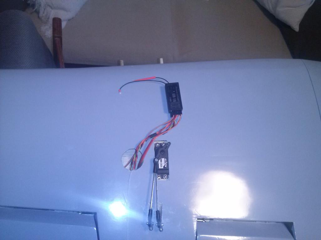 Přijímač dostal souseda - elektronický vypínač napájení, je to samodomo podle osvědčeného schematu s jedním MOSFETem, doplnil jsem jen obligátní kondík protože samotné aku jsou v křídle těsně u středového žebra: