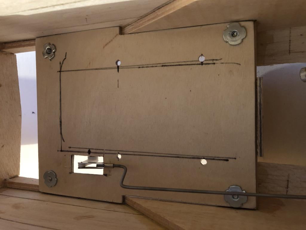 Jelikož jsem se rozhodnul schovat všechny táhla (kromě směrovky, protože ta je i na originálu viditelná), tak jsem výškovku vyřešil jak je na fotce.