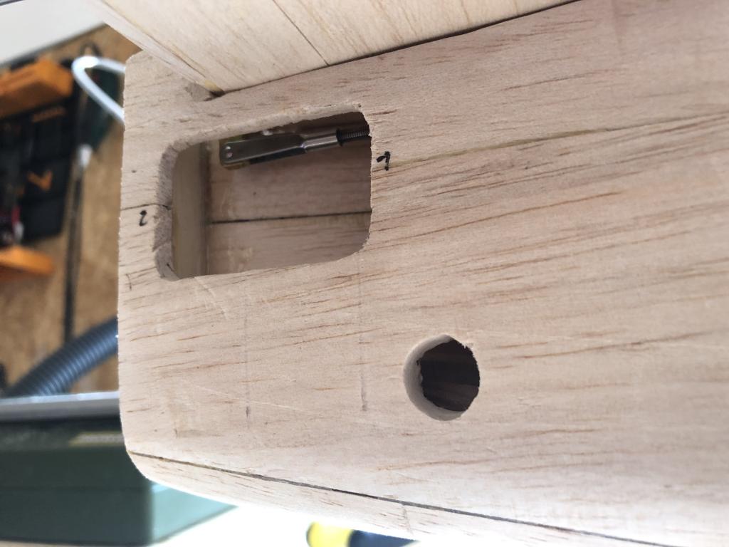 Otvor v zadní časti jsem zvolil kvůli vlastnímu klidu. Myslím si, že by všechny mechanizmy měli být přístupné i po zalepení VOP a SOP. Dírka pod tím je pro zašroubování ostruhy.