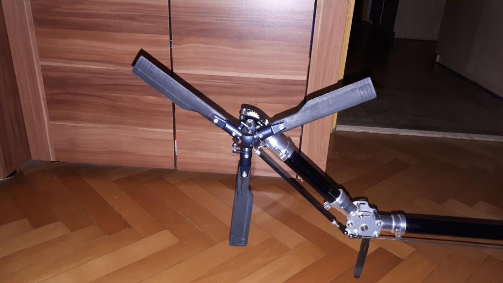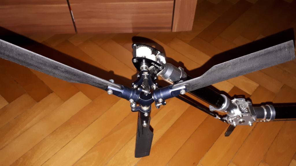 Na hlavnim rotoru mám ouzké měké listy co byli přímo k té hlavě. Hlava je udělána dobře aníž by se muselo doladit virtualni pootoceni desky cykliky.