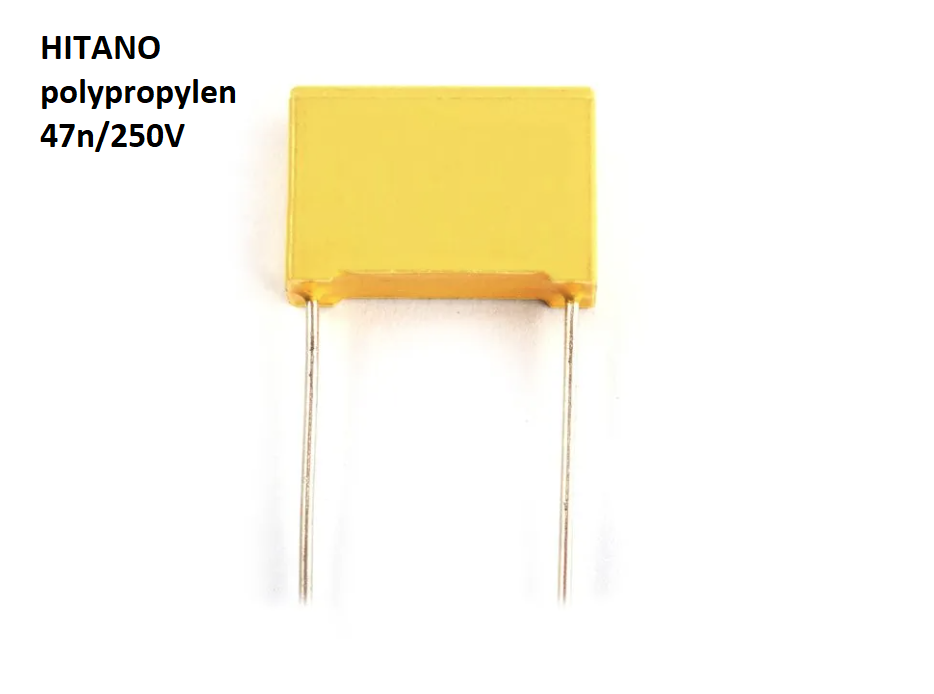 47nF polypropylénový kondenzátor od výrobce HITANO, tolerance +/-10%