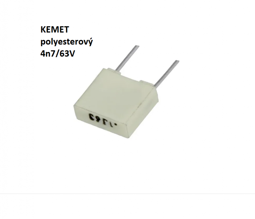 4,7nF polyesterový kondenzátor od výrobce KEMET , tolerance +/-5%, 63V