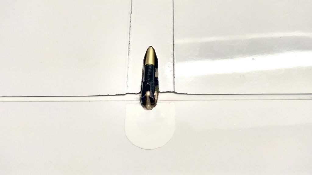 Samozřejmě původní krytky křidélkových serv jsou k ničemu, nemá smysl je použít přímo, nicméně dají se použít jako materiál na nové krytky, které by seděly. Jde to udělat na lajdáka, úplně se na to vyprdnout a jen zakryt servo, ale to není můj styl. Bohužel jsem neměl dostatečně velký kus laminátu, který by to celé pokryl najednou, vyšlo to ze dvou kusů. Z původní krytky jsem říznul její vypuklý začátek a udělal minikrytku pro pokrytí vidličky. Vidlička nakonec moc z profilu nevyčuhuje, přesto je vidět. Minikrytka to schová, ale je tam prostě něco navíc. Na fotkách to ještě není přilepeno, je to jen zasušeno, aby byla představa, jak to bude vypadat. Tak poraďte, s minikrytkou nebo bez …
