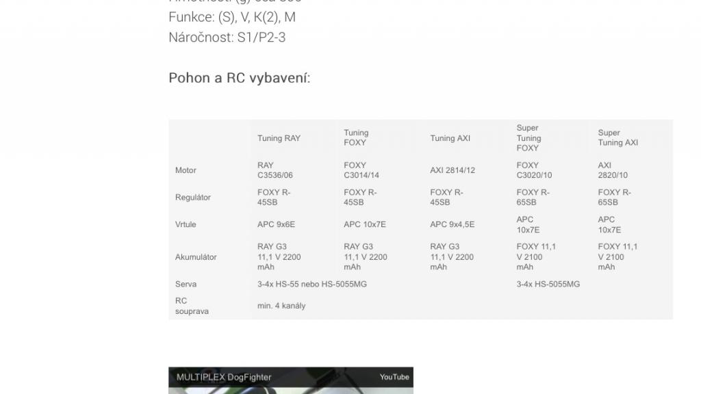 HonzaS-viděl jsem na videu,lítá Ti to pěkně.Chtěl bych osadit něčím levnějším:-D Tuhle tabulku má na webu Pecka model.No uvidím,jěště objednám sklopku a po nějakém motoru se kouknu,nejde mě o co největší rychost,ale o nějakej kompromis:váha,minimálka,cena