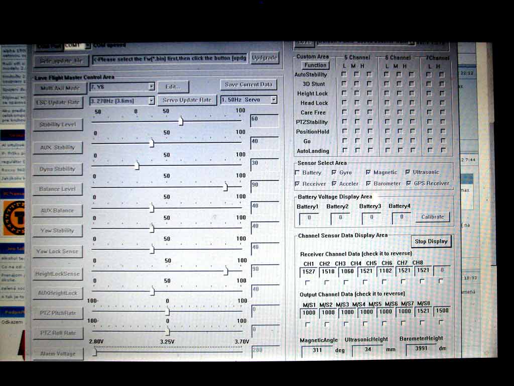 - loveFLightTool zobrazuju iba hodnoty na kanaloch 1-5 sa menia, hodnoty na ostatnych su uplne staticke