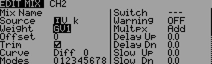 Jen pro zajímavost řešení přes Lua script v kombinaci s proměnnou GV1 a váhou mixu.