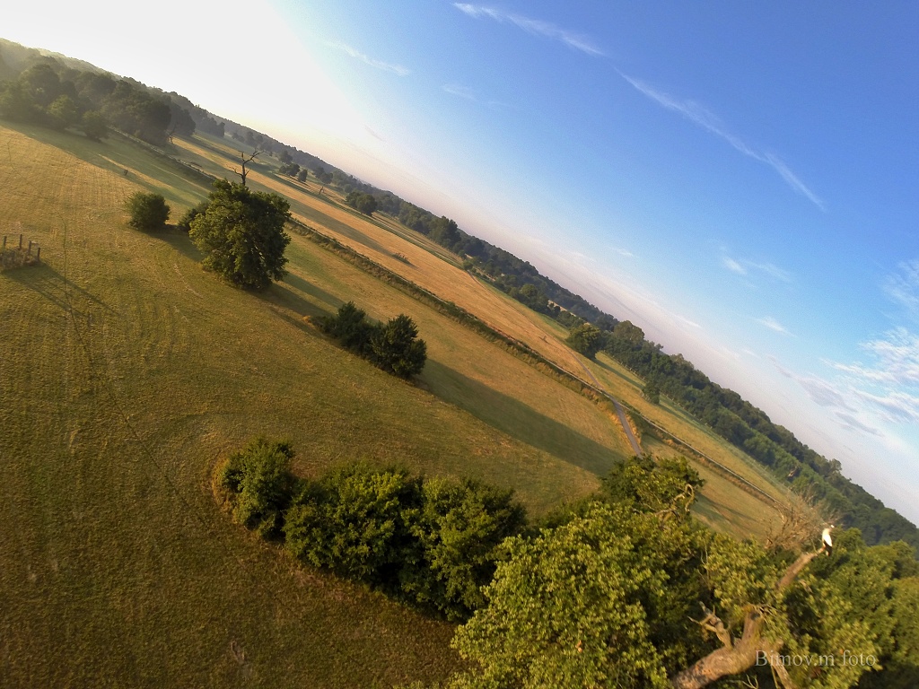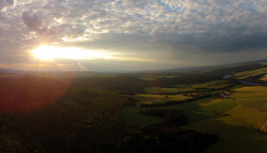 Budíček 4:15 hod kouknu ze stanu a úžasná dvouvrstvá mlha neváhal jsem a rychle jsem provedl předletovou .... zapnu kameru a hodím cca 5 minut letu, přistanu kontrola kamery a ooovej baterka klekla to je na ... ! Bohužel o to nejlepší jsem přišel pak do toho začalo svítit slunce a bylo to pryč. Dal jsem ještě jeden let ale nebylo to ono . Na jedné s fotek je i čáp. Dalo by se říci že byl jak přilepený ani se nehnul když jsem prolétal o kolo.