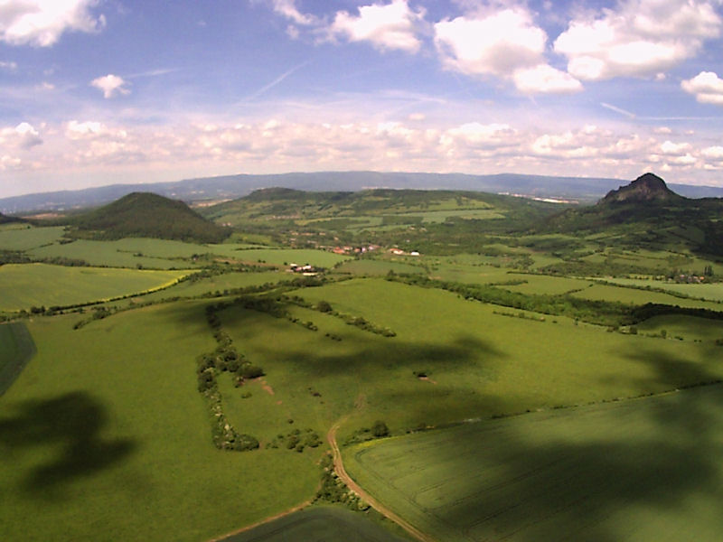 Vrchy Bořeň a Želeničák při pohledu od mého domovského letiště v Lužicích (u Mostu)