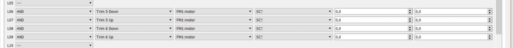 Podmienka je nastavená tak, aby trim pracoval len ak je spínač SC od seba a letový režim FM1 - motorový let.... pretože funkcia kompenzuje vyosenie motora.....