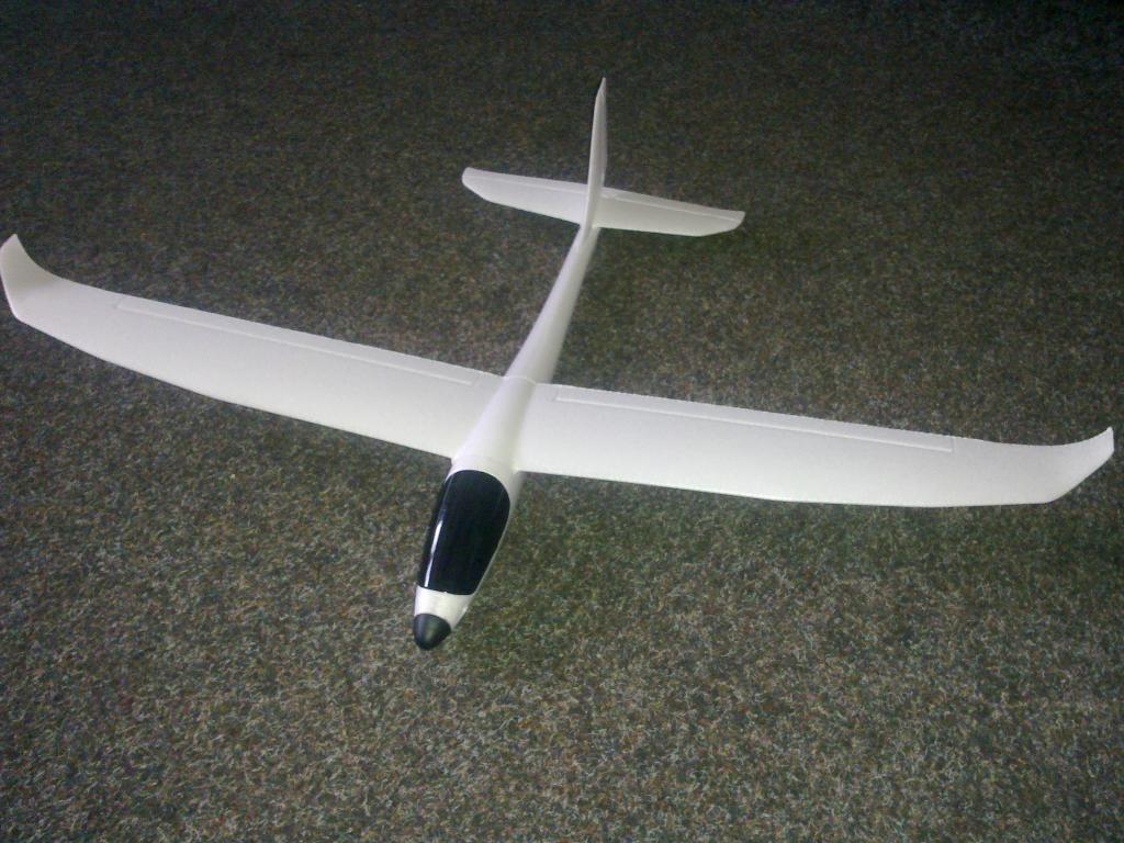 Křídlo jsem vyztužil uhlíkovou trubkou a trup po tvrdém přistání na dlažbu taky. Kabinku jsem přilepil k trupu kvůli vyztužení měkké špice a baterii vsouvám do štěrbiny. Lítá to fakt hezky. Na tomto videu mám ještě zapojená křidélka: